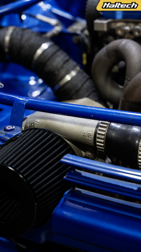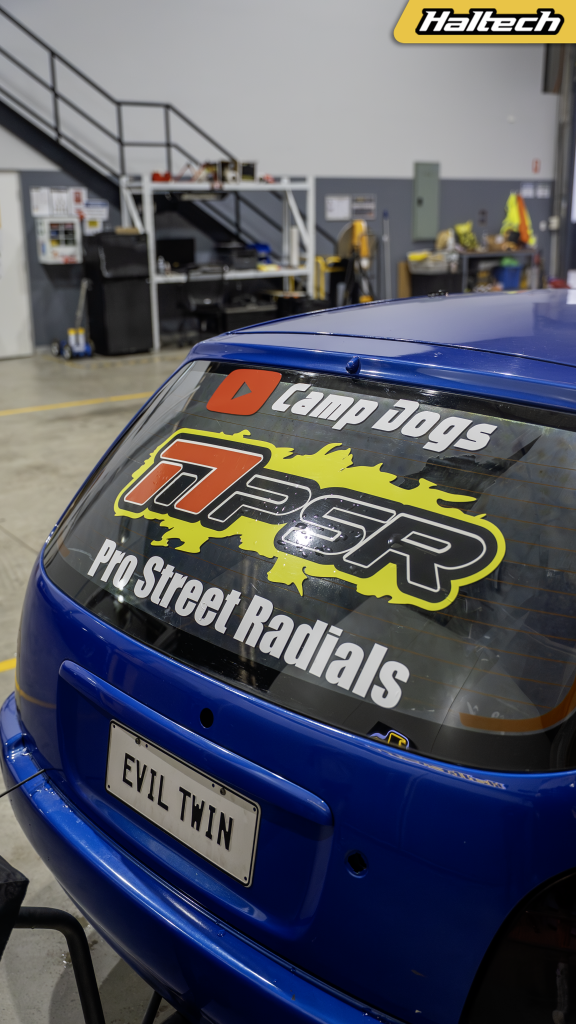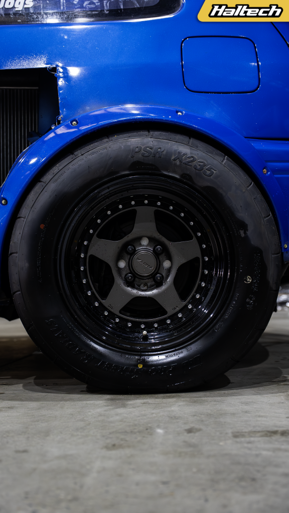 Two forged Toyota Paseo 5E-FTE engines power Evil Twin with a Pulsar G30 770 turbo each, and a suite of shiny billet parts and two fully built auto gearboxes help get that power to the ground. Two Elite 1500‘s, two widebands, and two keypads. Anything you can think of, they’ve doubled.